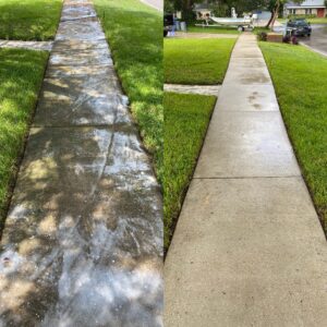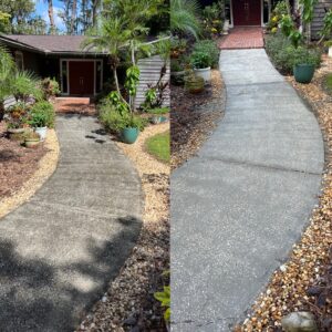 We utilize advanced and safer methods in the pressure washing industry, ensuring a more effective and efficient cleaning experience. Our concrete cleaning technique involves applying a diluted cleaning mixture based on the cleaned material, allowing it to work (dwell), and then gently rinsing to remove the cleaning solution, algae, mold, and other contaminants. This process sets us apart, providing you with the best pressure washing cleaning experience in the market and in the Land O’ Lakes area.